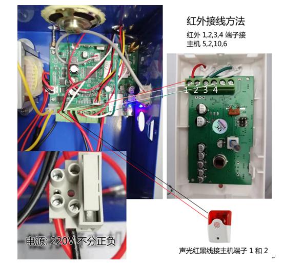 聲光紅黑線接主機端子 1 和 2